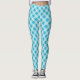 A model showcasing high-waisted leggings with a light blue plaid pattern. Paired with black sneakers, the look is casual and modern.