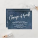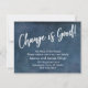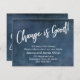 Mantenha seus amigos e familiares atualizados com seu novo endereço usando esses cartões de anúncio simples e elegantes. Você pode inseri-los em suas mensagens no tema do casamento ou compartilhá-los pessoalmente, como você vê ajustado. Quer você seja um recém-casado ou apenas queira uma design única para deixar sua tribo saber como encontrá-lo, esta carta é versátil o suficiente para qualquer um. Ele apresenta gráficos de tipografia bonito que leem "Change is Good!" na frente e "Keep in Touch!" na parte de trás, usando uma fonte moderna, casual, escrita à mão. Use os campos modelo para adicionar todos os seus próprios detalhes para personalizar este design para seu próprio uso. O tipo branco foi colocado sobre um fundo azul de marinho verde texturizado em safra. Se você substituísse isto por uma imagem de fundo diferente, isso também é possível! 105 //