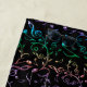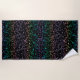 A música Jeweled do arco-íris nota a toalha de praia do teste padrão. Roxo, azul, verde. ouro e notas musicais e clefs do rosa em um teste padrão floral sobre o preto ou a sua escolha da cor do fundo. Um grande presente para seu músico ou melómano favorito.