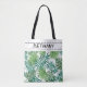 Crie um saco de na moda-tote personalizado com um design de folha natural em verde e branco. Design criado com a imagem do Creative Commons de pixabay.