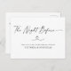 Um design simples que apresenta um fino roteiro de caligrafia modernista anunciando o janto "A Noite Antes do Ensaio". Personalize facilmente as suas informações pessoais, incluindo as iniciais do monograma na parte traseira do cartão. Um design minimalista que pode ser combinado com qualquer tema moderno do casamento.