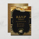 Uma textura luxuosa de seda dourada esfregada através de dois anéis de casamento num fundo preto dramático com uma banda de Deco para dar à design uma chic e um olhar glamouroso para personalizar