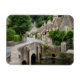 Magneta retangular da ponte sobre o rio Bybrook, na pequena e tenra aldeia de Castle Combe, com casas construídas a partir de pedra de mel nas Cotswolds, Inglaterra, Reino Unido. Um souvenir excelente!