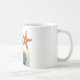 Esta caneca da praia caracteriza uma fotografia dos chinelos na praia e uma fotografia da estrela do mar.
