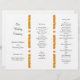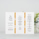 Dobre este programa de casamento modelo em 3 após a compra. Duas linhas de folhas coloridas de queda dividem as seções. O texto modelo preto é fácil de mudar e personalizar para a sua cerimônia. Será aberto como um acordo com todas as impressões - imagens e texto - APENAS num dos lados. Escolha qualquer tipo de papel, o reciclado é mostrado.