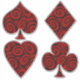Torne mais clara a decoração do seu partido Wonderland com este vinil autocolante de 14" x 14" com uma imagem de uma espada, clube, diamante e coração rodopados de vermelho e preto, que lembra os rosas da Rainha, depois de os soldados os terem pintado de vermelho, é claro. Veja toda a coleção Wonderland Sticker nos CONVITES | Seção Stickers & Labels