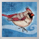 A Senhora é um Cardeal - uma ave cardeal fêmea sobre um fundo de abstrato azul e forma de espiral sugestiva de um galho.