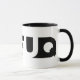 A sombra de Dafuq obstrui o skate. Caneca