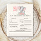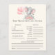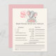 Diseño para juego de predicciones del bebe con tematica con un hermoso elefante con globos rosas en acuarela . Este es un juego perfecto para jugar durante el baby shower y sin duda será un gran placer. La tarjeta pide a los invitados que predigan cómo sería el bebé.