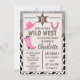 O convite ocidental selvagem do aniversário desta menina caracteriza um par de botas, de crachá do xerife, de chapéu da vaqueira e de calçados cor-de-rosa do cavalo. A beira do fundo consiste na imagem de madeira e em um teste padrão do couro. Eu quis criar uma série dos convites da menina ocidental selvagem para a loja porque é um tema popular do aniversário. Se você exige um esquema de cores diferente por favor contacte-me para um modelo novo sem nenhum custo extra. A vaqueira das botas do rosa desta menina o convite do aniversário que é apropriado para uma vasta gama de agesand está pronta para ser personalizado.