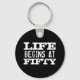 A vida começa na 50 engraçada chaveiro de 50ª rodada de aniversário. Citação divertida é chave para homens e mulheres de cinquenta anos. Alterar o ano de idade em conformidade. Design de tipografia vintage desbotada com idade personalizada. Adicione seu próprio número personalizado. Legal ideia de presente de Festa de aniversário surpresa para o pai lendário, pai, marido, tio, avô, irmão, avô, padrasto, padrasto, reformado, chefe, colega de trabalho, viajante, mãe, esposa, irmã, tia, tia, avó, casal, recém-casados, etc. Design preto e branco com letras de aparência angustiadas. Humor específico da idade / Na piada da colina para caras e senhoras de cinquenta anos. Modelo Grungy para cinquenta comemoração de aniversário. Estimulando a letra do estilo. Personalizável com seu próprio discurso humorístico ou ideias de slogan. Número personalizável para 30 40th 60th 80 Bday! Acessórios personalizados para ele ou para ela.