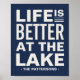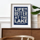 Um presente surpreendente ou uma adição legal e personalizada à sua moradia no lado do lago, nosso impressão enquadrado apresenta "A vida é melhor no lago" em tipografia de blocos em um fundo azul marinho. Personalize com seu nome de família em letras correspondentes na parte inferior.