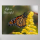 A vida é borboleta de monarca bonita no poster Goldenrod