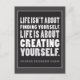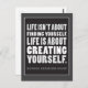 A vida não é sobre se encontrar. A vida é sobre se criar. Um lembrete de que fazemos o nosso próprio destino e nos tornamos quem nos quer ser. Design preto e branco, com tipografia ousada em tons de carvão de cinza e branco.