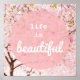 Esta citação inspiradora é combinada com uma bela fotografia do Blossomo da Cereja Sakura em floração, tirada pela EggPlant e Purple. Esta design foi criada para nos recordar a todos "A vida é bela".