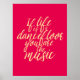 Um legal poster de caligrafia com letras inspiradoras sobre vida, amor e música. Se a vida é um andar de dança, você é a música. Uma decoração de excelente para o seu quarto. Perfeito para amantes de música e aqueles apaixonados por músicas e letras. A cor de fundo pode ser personalizada.
