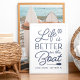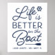 Decorre a sua moradia flutuante com esta impressão com a frase "a vida é melhor no barco", em letras azuis náuticas com marinho acentuado com a roda do navio e um remos. Personalize com seu nome de família ou nome de barco embaixo.