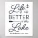 Decorre a sua moradia ao lado do lago com esta impressão frameável que inclui a frase "a vida é melhor no lago" em letras azuis marinhos profundas acentuadas com uma âncora e um remos. Personalize com seu nome de família e/ou ano estabelecido abaixo.