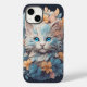 Pintura criativa de um gato floral fofo com olhos azuis. Perfeito para amantes de gatos!