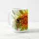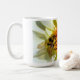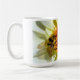Abelha de mel de trabalhador e caneca de café impressão de flor amarela.