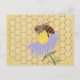 A pintura de uma abelha do mel que aprecia uma flor, em um fundo do favo de mel, é imprimida em cartão feitos sob encomenda.