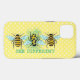 Abelhas adoráveis com abelha de cabeça para baixo no centro para ilustrar o texto "Abelhas diferentes". O plano de fundo da bolinhas amarela pode ser removido ou alterado se desejar.