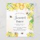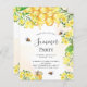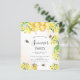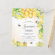 Um convite de festas de verão com fundo branco e ouro aquoso. Decorados com espécimes do gênero Bombus, melando mel e favos de mel com flores amarelas, flores e um pote de mel. Personalize e adicione um nome e detalhes da parte. Ouro e letras pretas. Perfeito para uma festa de verão ou outono