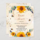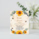 Um fundo branco e ouro, de cor aquosa, decorado com girassóis, espécimes do gênero Bombus spp., eucalipto verde, folhas de ouro e pó de ouro falso. Personalize e adicione um nome e detalhes da parte.