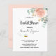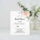Um convite para uma noiva. Um fundo branco chic. Decorado com ouro rosa, flor floral cor-de-rosa-penteada (rosa), verde-eucalipto, folhas e pererecas, cor-de-rosa, e um belo e feliz abelhão. Personalize e adicione um nome e detalhes da parte. Letras negras. O texto: Chá de panela e o nome da noiva a ser é escrito com um moderno estilo escrito à mão. Traseira: cor de fundo Rosa dourada e abelha feliz sorrindo.