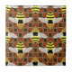 Esse padrão bonito apresenta um motivo gráfico de abelhas ocupadas em um conjunto preto e amarelo contra um design estilizado de mel em tons quentes de laranja e castanho.