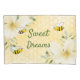 Bons sonhos! Fundo amarelo, branco com um padrão de mel. Decorados com flores tropicais, cor de creme, amarelo-claro, hibisco e abelhas-tronco felizes. Com o texto: Sonhos Doce. Texto com letra verde. Perfeito para sua casa de verão! Volta: padrão de colmeia ouro.
