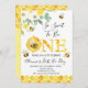 Floral Honey Bee First Bee Day Birthday Convite para Bumble Doce ou abelha de mel foi o primeiro convite de aniversário para uma garotinha com arranjos florais majoritariamente amarelos e quatro bonitinhas.