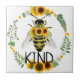 Azulejo cerâmico com abelha pintada e girassóis para encorajar e promover a bondade.