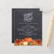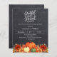 Um fundo castrado rústico. Decorado com abóboras e flores laranja e amarelas. Personalize e adicione os detalhes da festa. Script de texto: Grateful e abençoado. 1 folha = 1 convite impresso de borda a borda.
