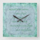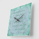 Declare a sua fé e firme convicção em Cristo com este relógio de decor da casa na moda quadrado com uma linha de escritura de Jeremiah 17:7 que diz "...Abençoados são aqueles que confiam no Senhor e fizeram do Senhor sua esperança e confiança." Os tons suaves de azul ardósio, aqua e verde junto com o ornamentado faux embossed look scroll work lhe dão uma aparência versátil que pareceria excelente em muitas salas na sua casa.