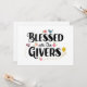 Obrigado alguém com uma bela letra de mão e design de tipografia caligráfica com a mensagem, "Abençoados são os Givers." Design aparece com pássaro, borboleta e sotaques florais coloridos e divertidos. De volta está esta mensagem totalmente editável, "Eles compartilham seus presentes de forma livre e altruísta, porque seus espíritos são gentis, generosos, e cheio de luz. Porque você é uma dessas pessoas, minha vida é mais rica e mais bonita. Obrigado."