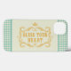 Capa de telefone bonita com um toque de charme sulista, com texto dourado "abençoe o seu coração" no quadro do rico e nas fronteiras azuis vintage gingham.