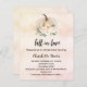 Um fundo de rosa dourado e gradiente cor-de-rosa esmagado, decorado com uma abóbora e flores de cor creme. Personalize e adicione o nome e os detalhes da festa. Texto: apaixonar 1 folha = 1 convite impresso de ponta a ponta.