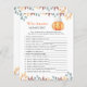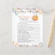 "Uma pequena abóbora está a caminho. Celebre com este tema de abóbora de desenho animado para festa de baby shower! Abóbora kawaii de desenho animado fofa com chapéu de outono (boné) e folhas de outono. No verso do cartão há folhas de outono.