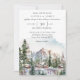 Winter Lodge in the Mountain Wedding Invitation é uma bela cena de inverno com aquarela acolchoada e repolho, montanhas de esqui com elevadores de esqui, lago de montanha congelado com skatistas, alce, raposa e coruja. Convite perfeito para o seu casamento nas montanhas, cartão de Natal, feriado familiar nas montanhas. Altere o texto para corresponder ao seu evento.
