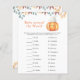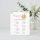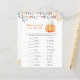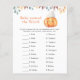 "Uma pequena abóbora está a caminho. Celebre com este tema de abóbora de desenho animado para festa de baby shower! Abóbora kawaii de desenho animado fofo com chapéu de outono (boné) e folhas de outono. No verso do cartão estão folhas de outono.