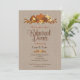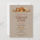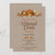 Convite do jantar de ensaio da queda com fundo rústico de serapilheira e as abóboras brilhadas.