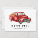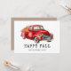 Lindo cartão de Ação de Graças apresenta caminhão vermelho aquarela carregando abóboras.