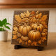 Este azulejo de cerâmica, perfeito para a estação de outono, apresenta abóboras decorativas em um fundo de madeira falsa. Ideal para artesanato sazonal ou como um revestimento, este azulejo evoca uma atmosfera aconchegante e quente. "Arte gerada por IA com direção de design de Susang6"
