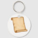 Este design é um pergaminho aberto do tipo que teríamos tido em dias medievais. O pergaminho aberto não tem nada escrito nele. Este design de rolagem aberto parece excelente neste Chaveiro