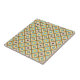 Abstract geometric pattern with diamond shapes in pastel colors. Each contains a star-like motif in teal, orange, or brown. Retro and symmetrical design.
