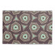 Abstract geometric pattern with layered pentagons and triangles in beige and teal on a dark brown background, creating a retro, symmetrical feel.