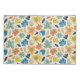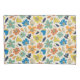 A playful, seamless repeating pattern featuring stylized multicolored flowers and leaves with textured, sketchy edges on a cream background.