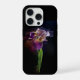 A striking and artistic iris flower captured with a soft abstract motion effect, creating a sense of movement and elegance. The rich purple and golden tones contrast beautifully against the dark background, giving this floral design a dramatic and sophisticated look.