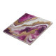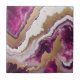 Elevate your home décor with this stunning abstract ceramic tile, featuring a mesmerizing purple and gold marble design. This piece captures the fluid beauty of alcohol ink art, blending deep plum, violet, and magenta hues with creamy white swirls and luxurious faux gold vein accents.
